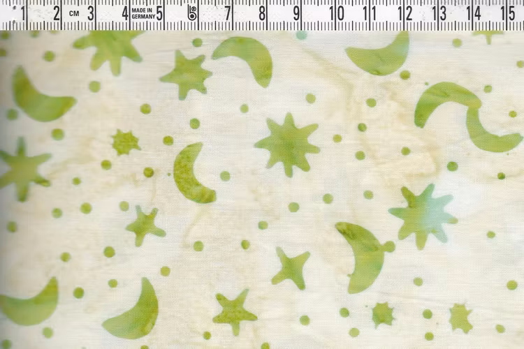 Läckert gröna stjärnor och månskäror på ljust mandelblomgrön himmel. Kan det bli bättre? OBS bakgrunden är inte vit utan ljusljusgrön