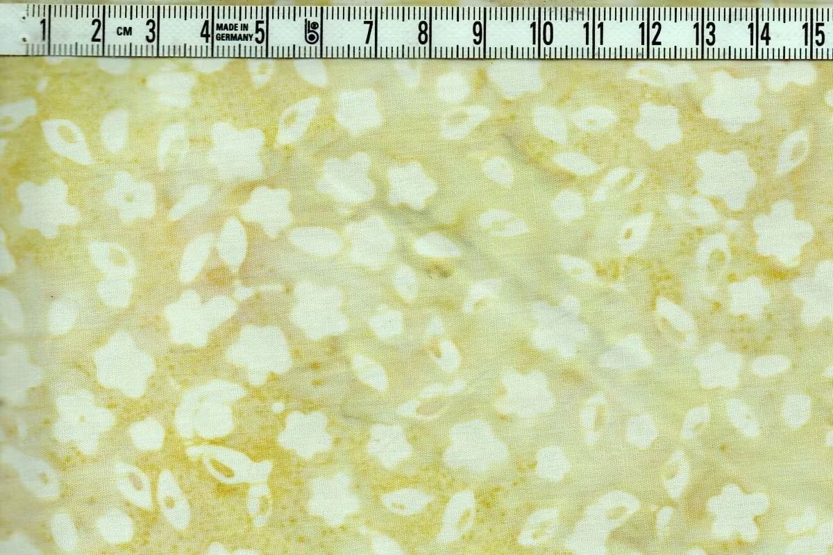 Ett mjukt och vänligt tyg i dovt ljusgrön ton med ett tätt mönster av små blommor och blad. Det diskreta uttrycket gör att det passar fint i både lapptäcken och klädsömnad där du vill ha något ljust men ändå levande. Den spräckliga färgningen ger extra liv åt ytan och påminner om solljus som silas genom skira löv.