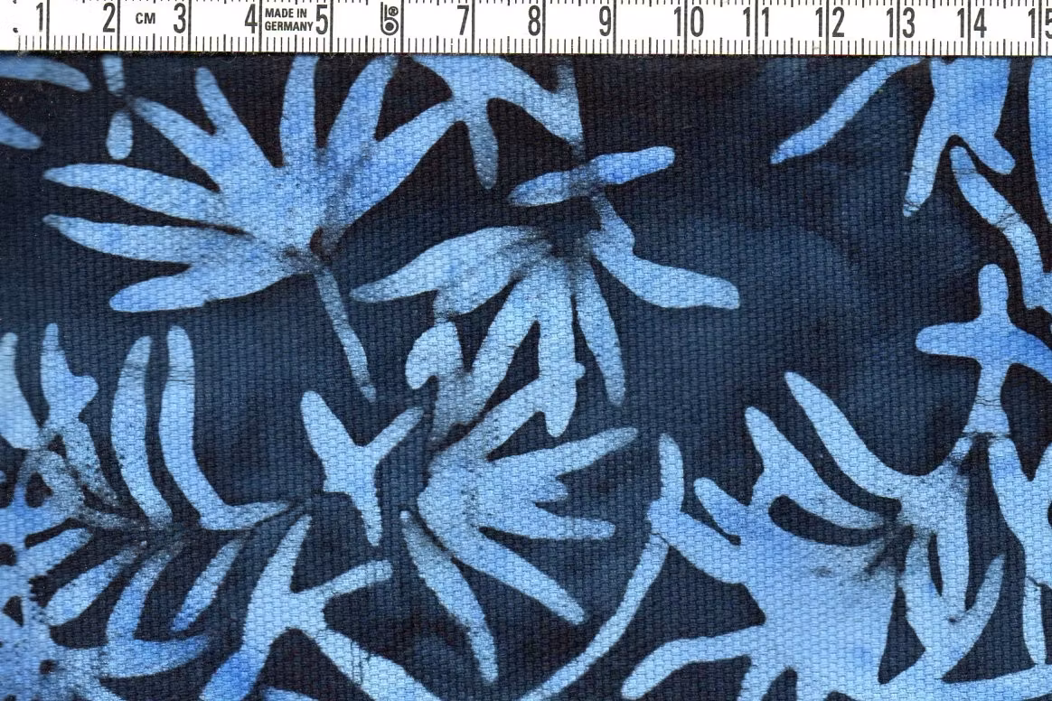 Mörkblå batik på canvas med bladmotiv – superkvalitet