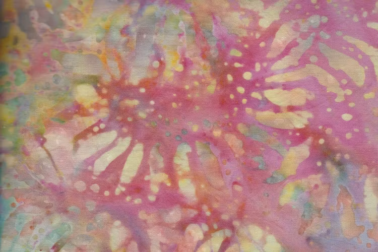 Det alltid så uppskattade solrostrycket i flera ganska ljusa något dämpade färger. Ett tyg att bli fridfull av att betrakta. Äkta handtryckt bomullsbatik som fä