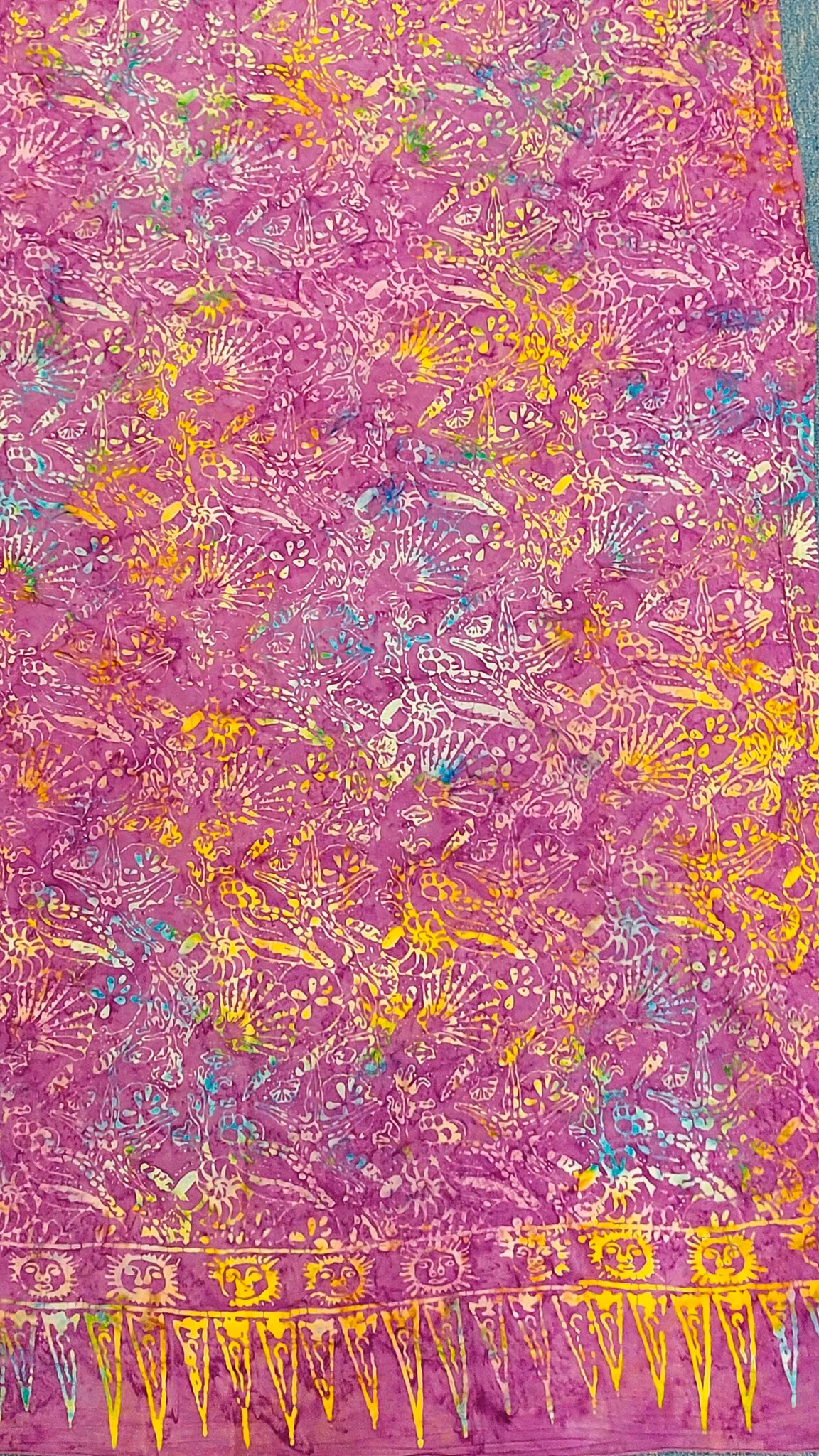 Äkta batiksaronger direkt från gudarnas ö, Bali. Viskostyg i toppkvalitet som är helt genomfärgad och likadan på båda sidorna, precis som alla våra äkta batiktyger. Med fransar. Storlek ca 110 x 180 cm plus fransarna. Denna Sarong är lila bas och det framgår tyvärr inte helt på bilderna.